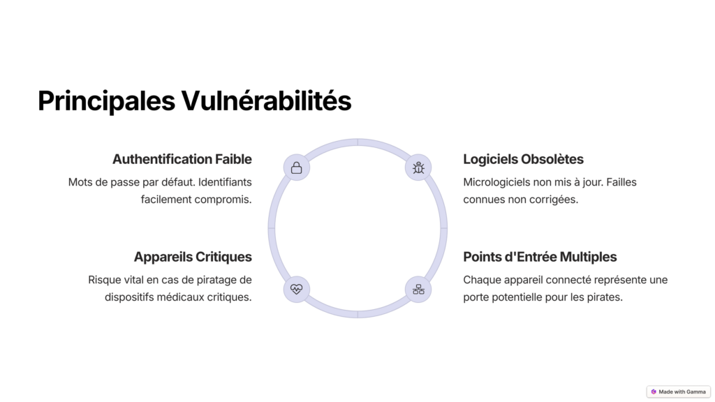 - Risques de Confidentialité : Les informations collectées par les objets connectés peuvent être mal utilisées si elles tombent entre de mauvaises mains, compromettant ainsi la confidentialité des patients.