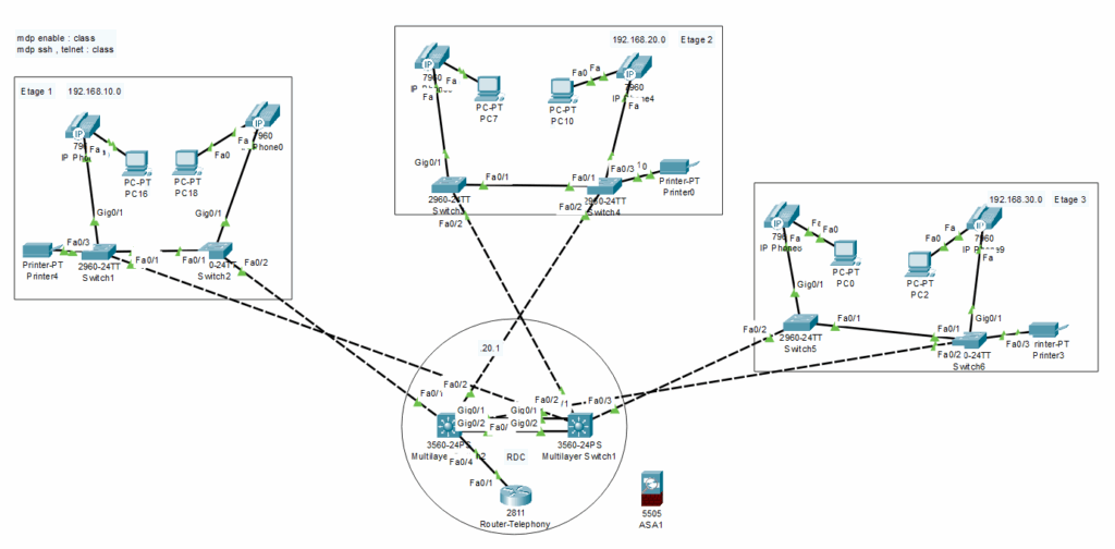 Lors de ma première année de BTS SIO, j’ai eu l’opportunité d’effectuer mon stage au sein de Attijariwafa Bank, une expérience particulièrement enrichissante. Intégré au département Télécom et Réseau, j’ai participé à la conception et à la mise en place d’une infrastructure LAN Campus pour un bâtiment de plusieurs étages. Mon travail a consisté à étudier les besoins en réseau, à élaborer un BOM (Bill Of Materials) et à configurer des équipements Cisco, tout en approfondissant mes connaissances sur des protocoles comme VTP, HSRP et SNMP. Cette immersion dans un environnement professionnel m’a permis de développer mes compétences techniques et d’acquérir une meilleure compréhension des enjeux liés aux réseaux d’entreprise et à la cybersécurité.